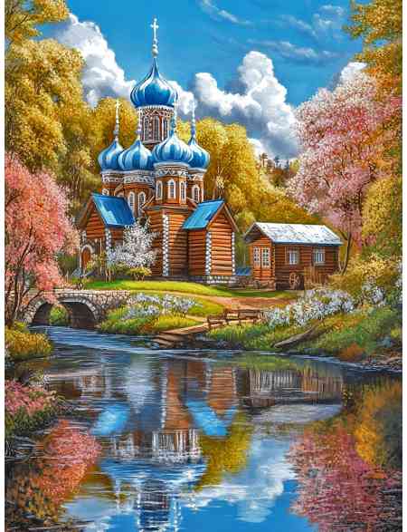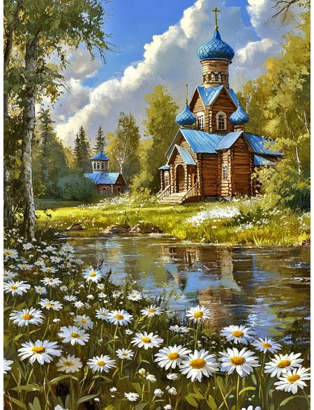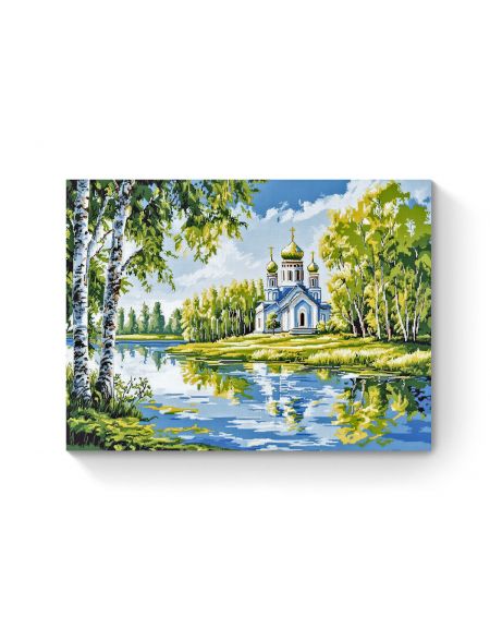 Алмазная мозаика без подрамника «Церковь у реки» 40x30 см