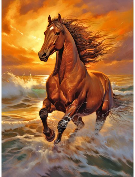 Алмазная мозаика без подрамника «Конь на закате» 90x70 см