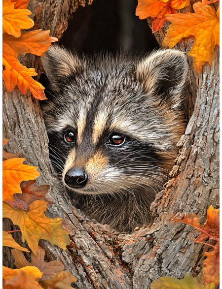 Алмазная мозаика без подрамника «Енот в лесу» 50x40 см