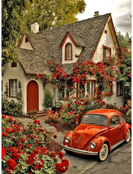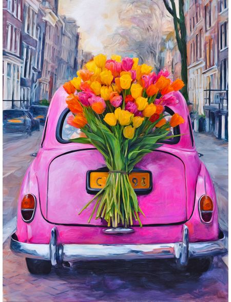 Алмазная мозаика без подрамника «Авто с цветами» 130x100 см