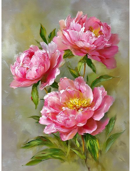 Алмазная мозаика без подрамника «Розовые пионы» 50x40 см, 50 цветов