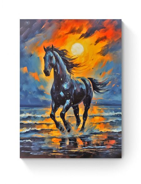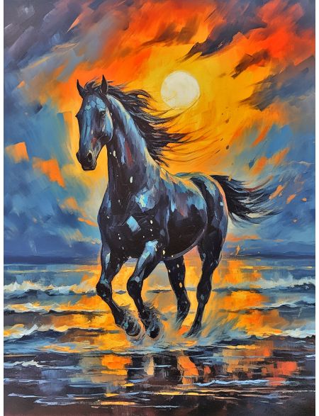 Алмазная мозаика на подрамнике «Чёрный конь» 90x70 см
