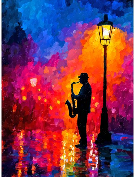 Алмазная мозаика без подрамника «Музыка в ночи» 70x50 см, 50 цветов