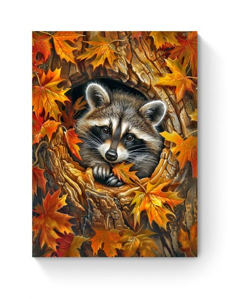 Алмазная мозаика на подрамнике «Енот и осень» 50x40 см, 46 цветов