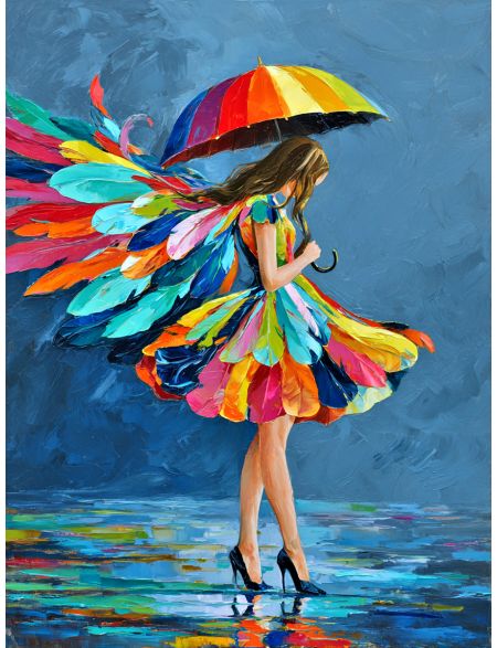 Алмазная мозаика без подрамника «Под зонтом» 90x70 см