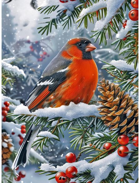 Алмазная мозаика без подрамника «Зимняя птичка» 90x70 см
