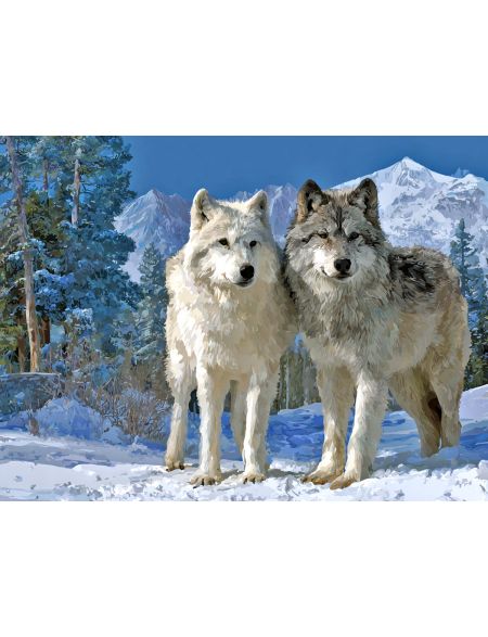 Алмазная мозаика на подрамнике «Волки в горах» 90x70 см