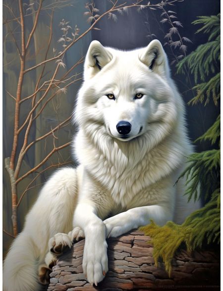 Алмазная мозаика без подрамника «Белый волк» 90x70 см, 48 цветов