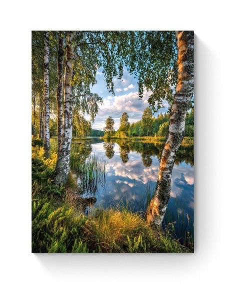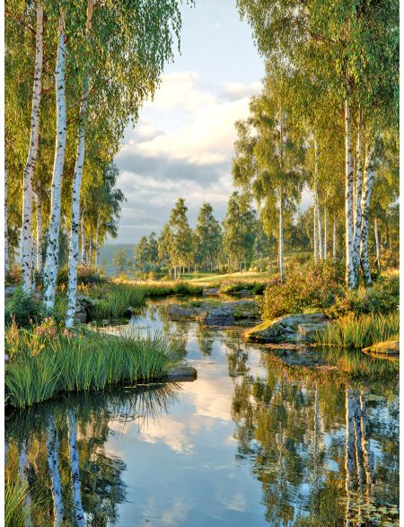 Алмазная мозаика без подрамника «Березы у воды» 90x70 см
