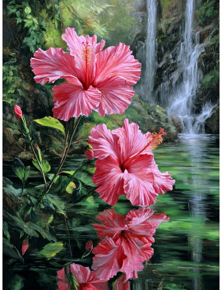 Алмазная мозаика без подрамника «Цветы гибискуса» 90x70 см