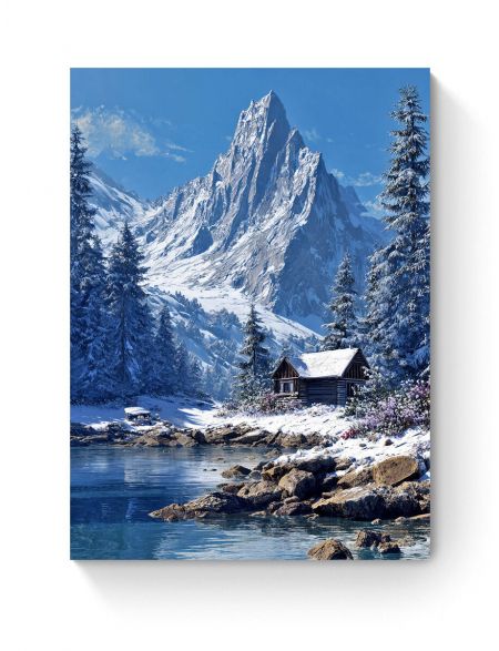 Алмазная мозаика на подрамнике «Зима в горах» 50x40 см