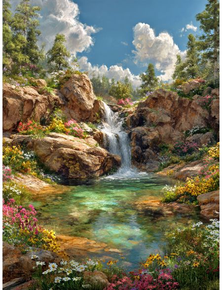 Алмазная мозаика без подрамника «Горный ручей» 130x100 см