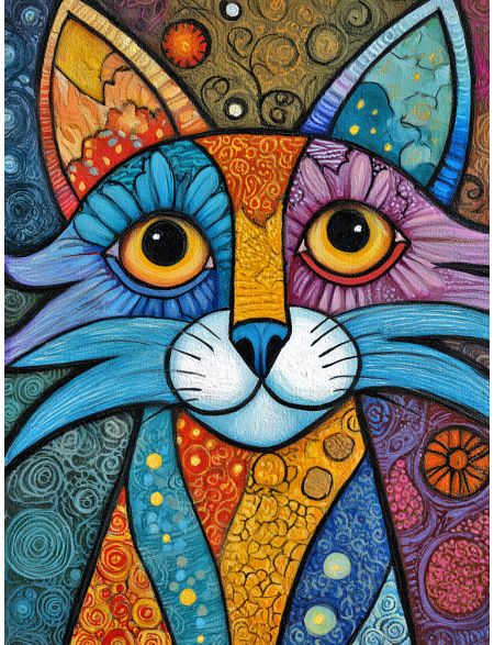 Алмазная мозаика без подрамника «Узорный кот» 50x40 см, 50 цветов