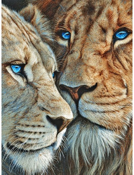 Алмазная мозаика без подрамника «Лев и львица» 90x70 см