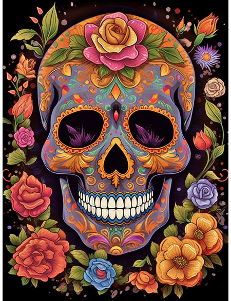 Алмазная мозаика без подрамника «Череп в цветах» 40x30 см