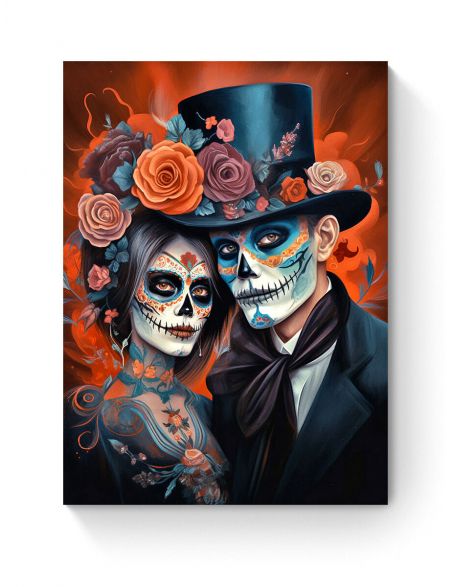 Алмазная мозаика на подрамнике «Череп в цветах» 70x50 см