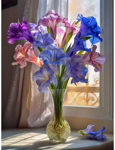 Алмазная мозаика без подрамника «Гладиолусы» 50x40 см, 45 цветов