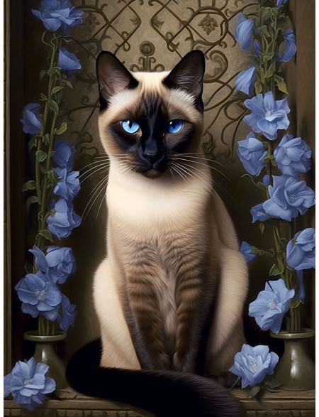 Алмазная мозаика без подрамника «Сиамский кот» 90x70 см