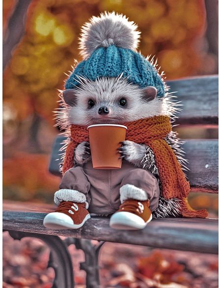 Алмазная мозаика без подрамника «Ёжик и кофе» 90x70 см