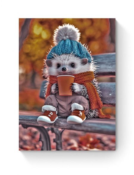 Алмазная мозаика на подрамнике «Ёжик и кофе» 90x70 см