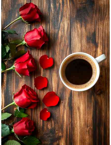 Алмазная мозаика без подрамника «Кофе и цветы» 90x70 см