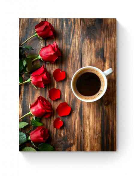 Алмазная мозаика на подрамнике «Кофе и цветы» 90x70 см