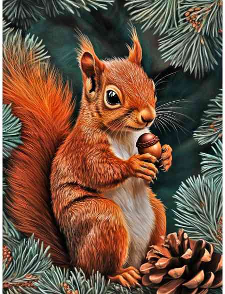 Алмазная мозаика без подрамника «Белка с орехом» 80x60 см