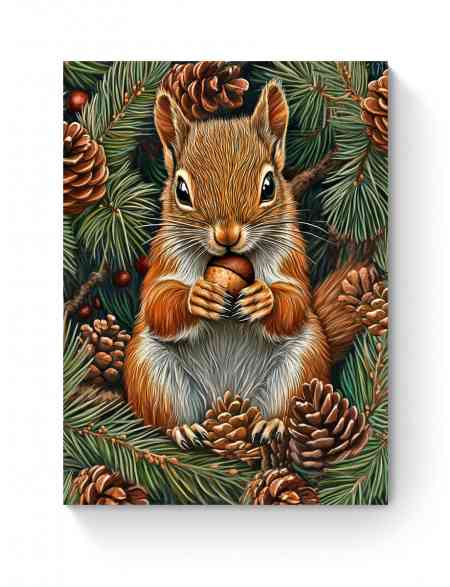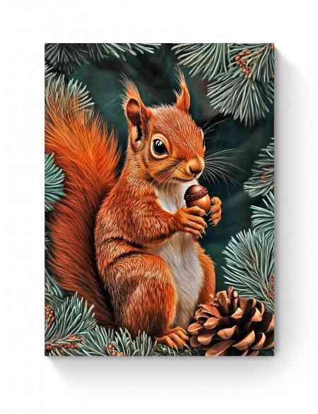 Алмазная мозаика на подрамнике «Белка с орехом» 35x25 см