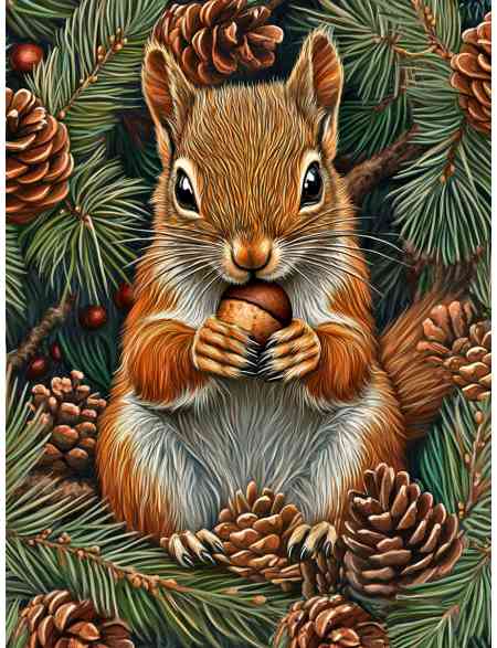 Алмазная мозаика без подрамника «Белка с орехом» 50x40 см