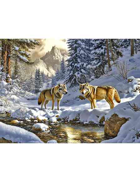 Алмазная мозаика без подрамника «Волки в лесу» 70x50 см