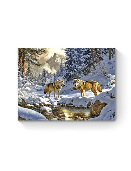 Алмазная мозаика на подрамнике «Волки в лесу» 35x25 см
