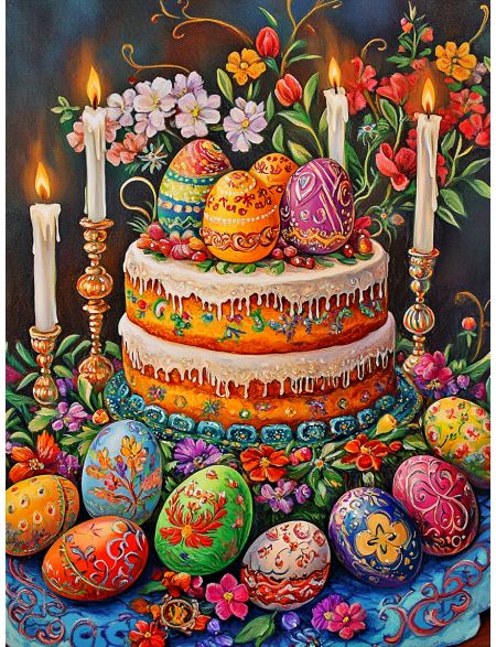Алмазная мозаика без подрамника «Кулич на пасху» 80x60 см
