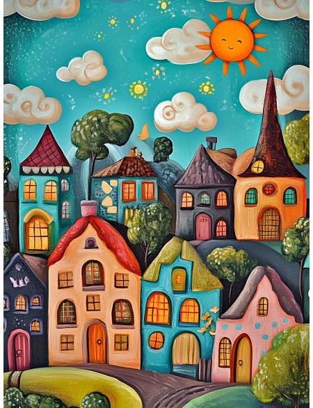 Алмазная мозаика без подрамника «Детский городок» 70x50 см