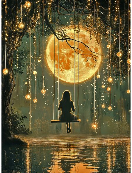 Алмазная мозаика без подрамника «Лунные качели» 50x40 см
