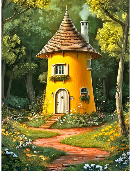 Алмазная мозаика без подрамника «Домик гнома» 130x100 см