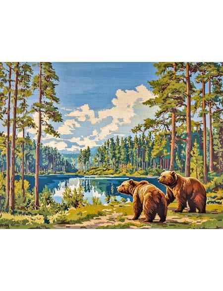 Алмазная мозаика без подрамника «Медведи у озера» 130x100 см