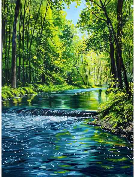 Алмазная мозаика без подрамника «Ручей в березовом лесу» 40x30 см, 30 цветов