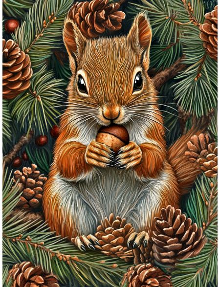 Алмазная мозаика без подрамника «Белка с орехом» 130x100 см