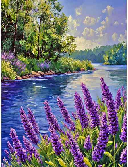 Алмазная мозаика без подрамника «Шалфей у реки» 130x100 см