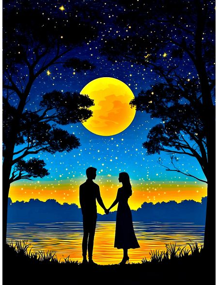 Алмазная мозаика без подрамника «Влюбленные» 130x100 см, 50 цветов
