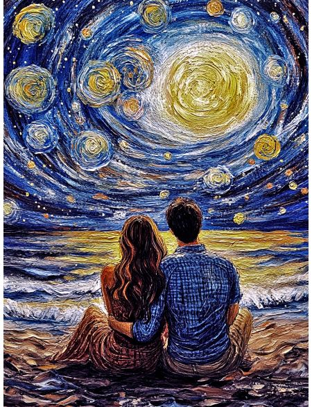 Алмазная мозаика без подрамника «Двое у моря» 130x100 см