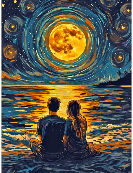 Алмазная мозаика без подрамника «Луна и море» 130x100 см