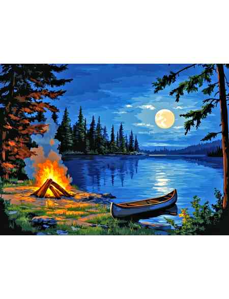 Алмазная мозаика без подрамника «Костер у озера» 130x100 см
