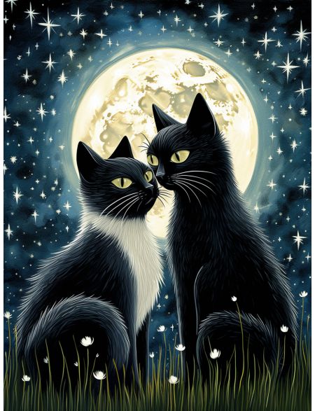 Алмазная мозаика на подрамнике «Лунный кот» 50x40 см, 50 цветов