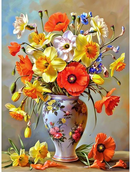 Алмазная мозаика без подрамника «Нарциссы и маки» 130x100 см
