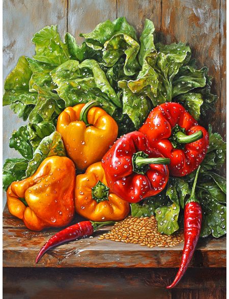 Алмазная мозаика без подрамника «Спелый перец» 130x100 см
