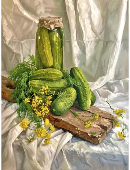 Алмазная мозаика без подрамника «Соленые огурцы» 130x100 см
