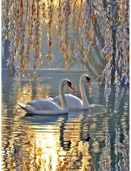 Алмазная мозаика без подрамника «Белые лебеди» 40x30 см