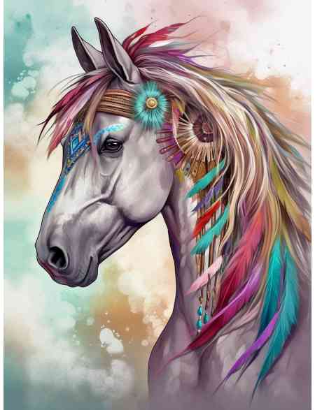 Алмазная мозаика без подрамника «Лошадь индейцев» 90x70 см