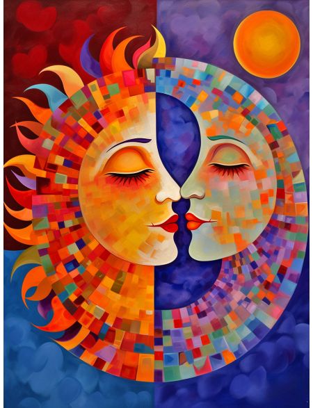 Алмазная мозаика без подрамника «Солнце и Луна» 90x70 см